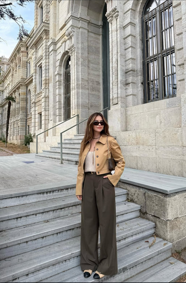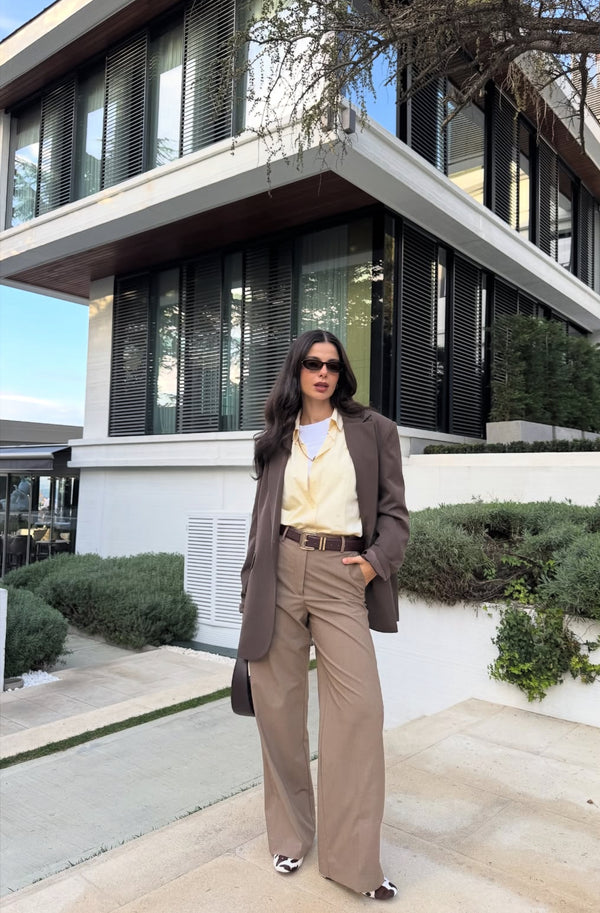 Black Tailored Ankle Pants | Sleek Slim-Fit Cropped Trousers | AtikaStyle - color variant: Dark Brown