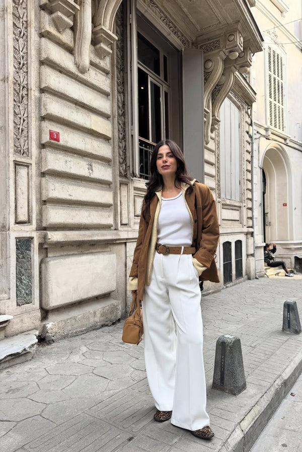 Black Tailored Ankle Pants | Sleek Slim-Fit Cropped Trousers | AtikaStyle - color variant: Light Beige