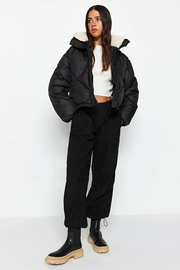Black Oversized Puffer Coat with Plush Collar — your go-to winter essential for warmth, comfort, and a clean, elevated look.