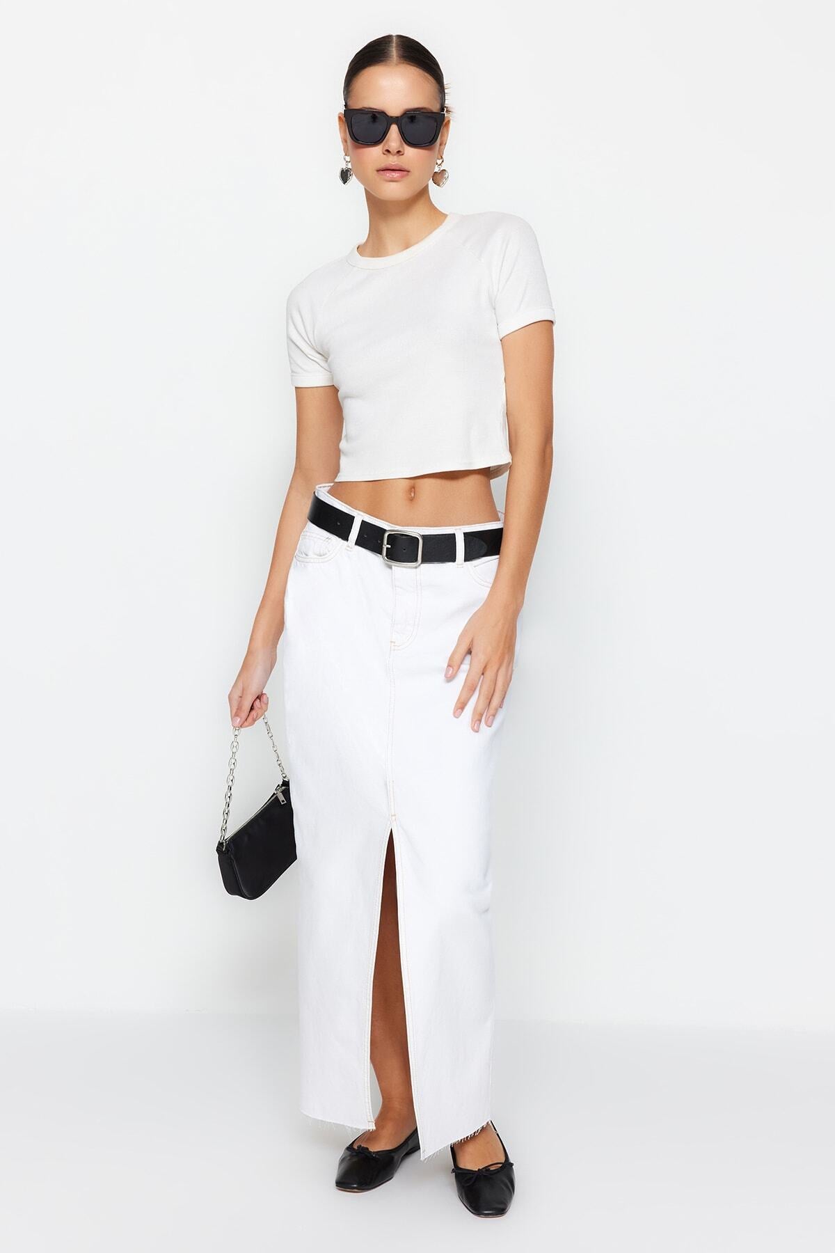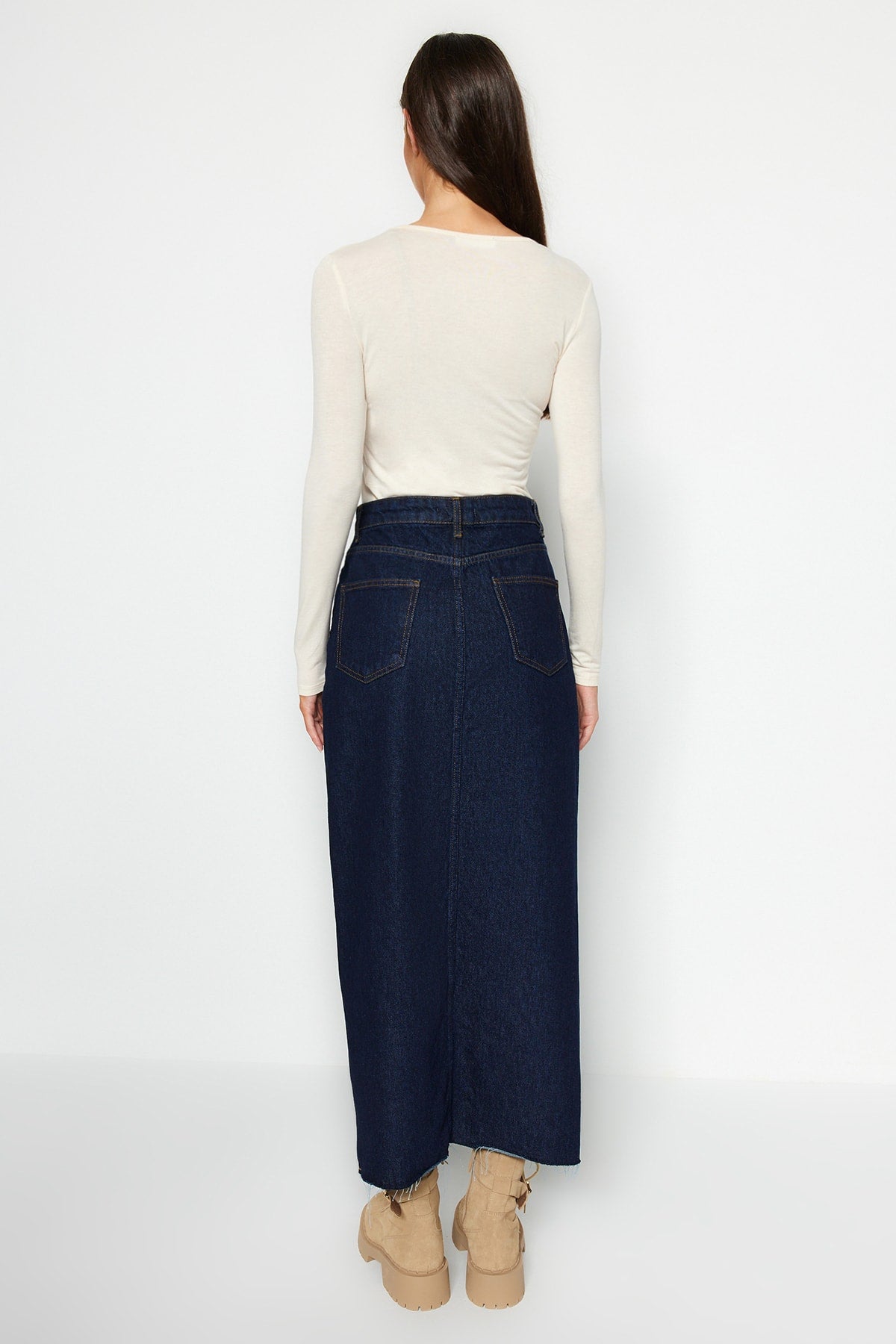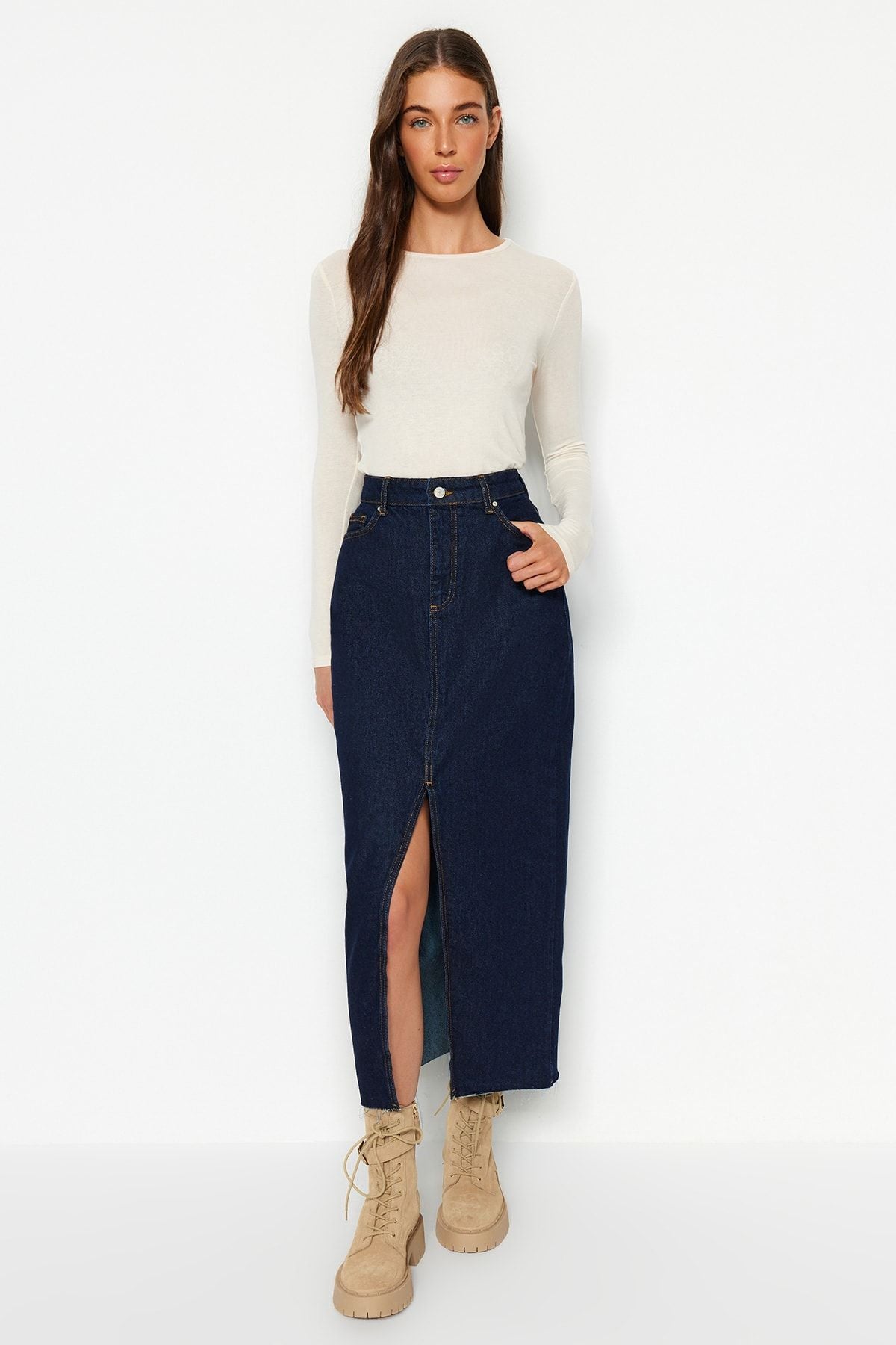 Black Denim High-Waist Slit Maxi Skirt – AtikaStyle