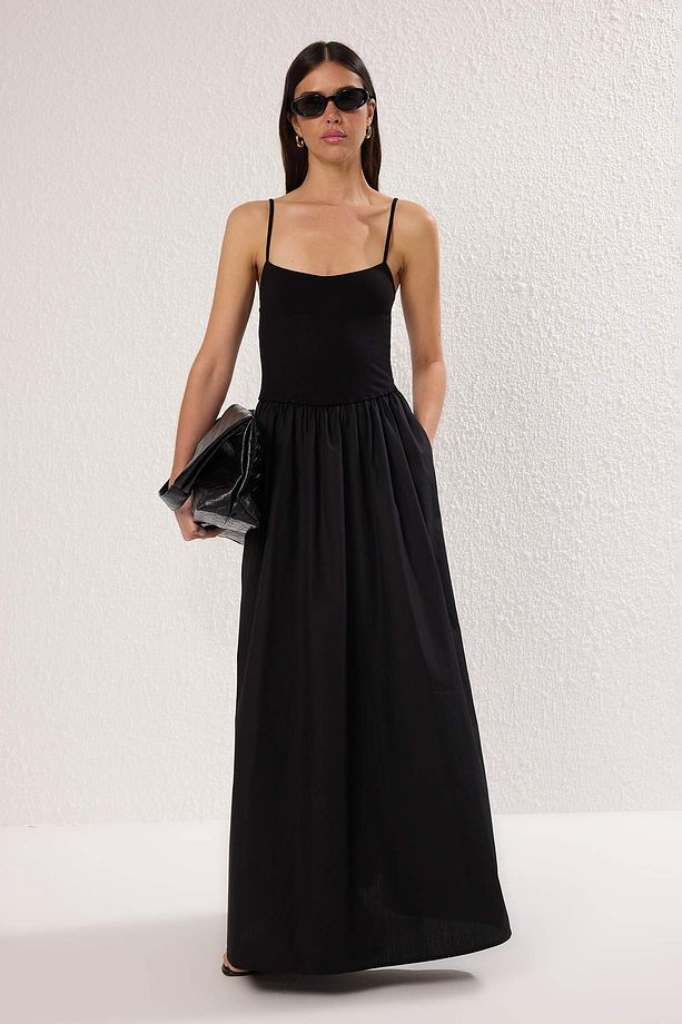 Minimal, timeless, and effortlessly polished — this black maxi dress features a sleek spaghetti strap top and flowy A-line silhouette. Its understated elegance makes it the perfect choice for weddings, formal dinners, summer soirées, or elevated everyday styling.