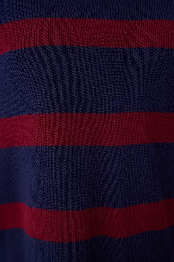 Step up your style game with this black and white striped knit polo sweater from Atikastyle. Featuring a deep V-neckline with a collar, wide stripes, and relaxed long sleeves, it’s the perfect mix of sporty and chic. Pair it with denim, skirts, or leather shorts for an effortless everyday casual look that transitions seamlessly from day to night.