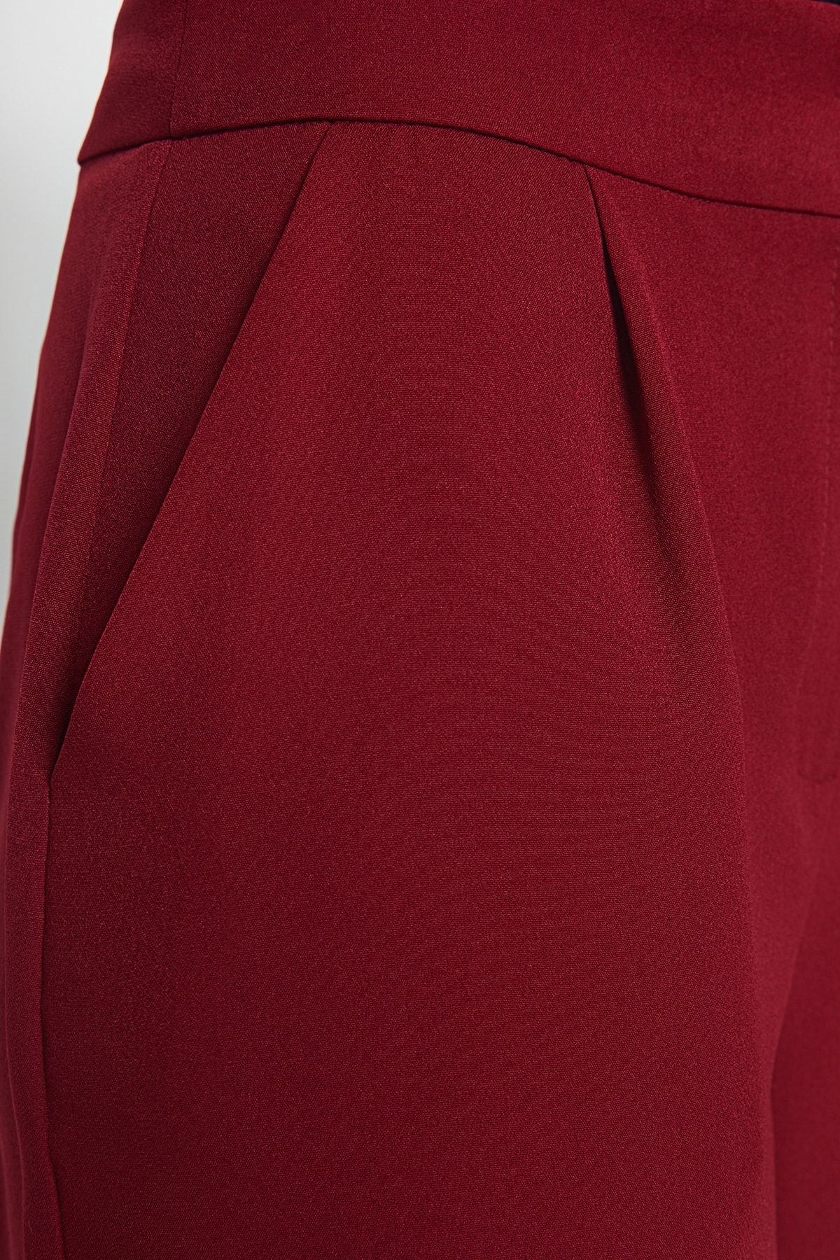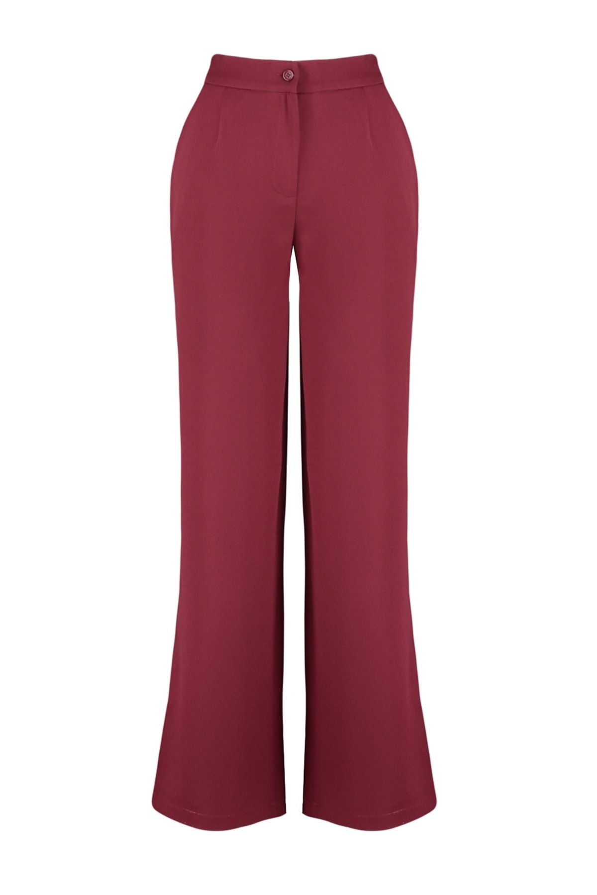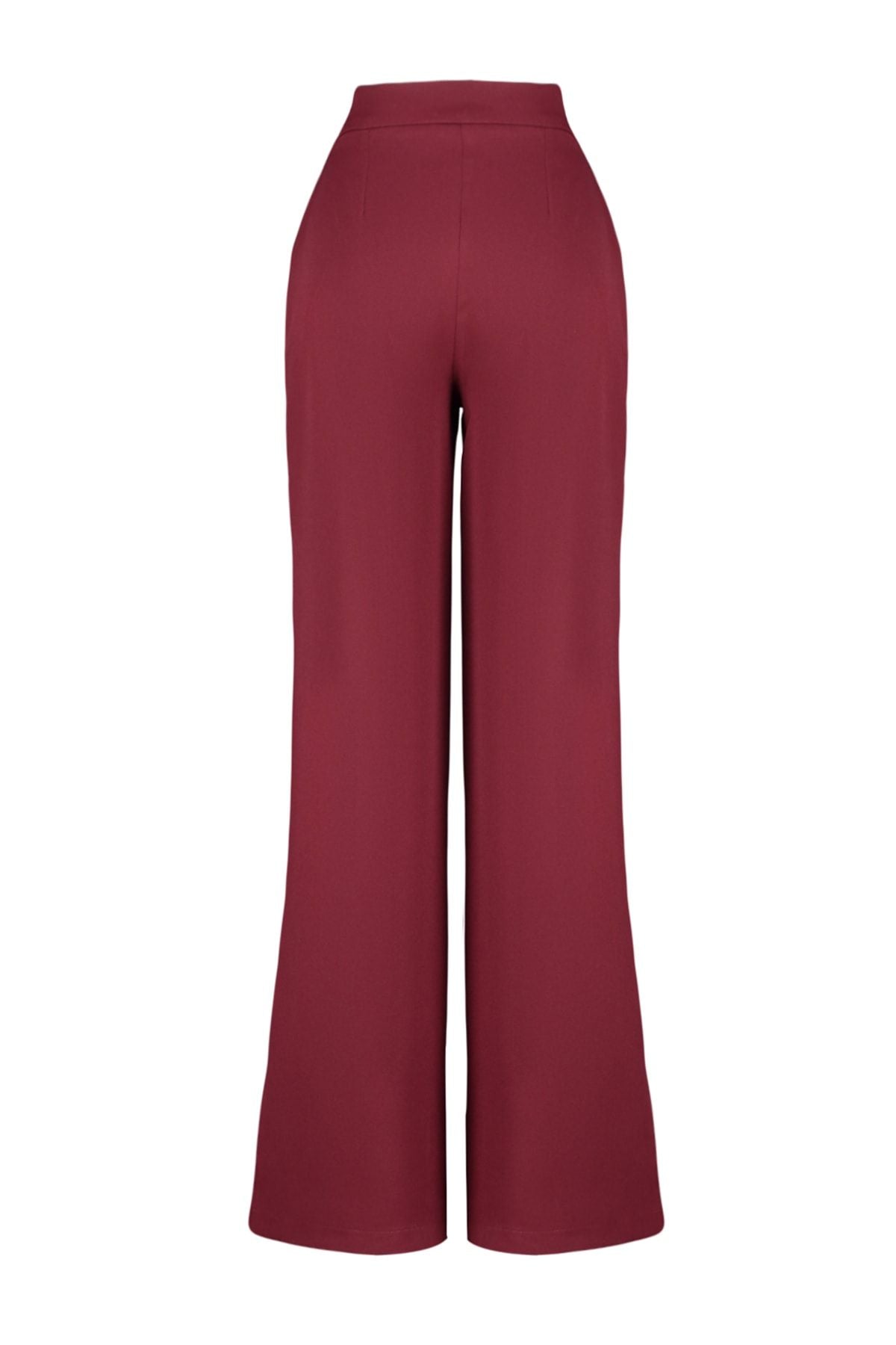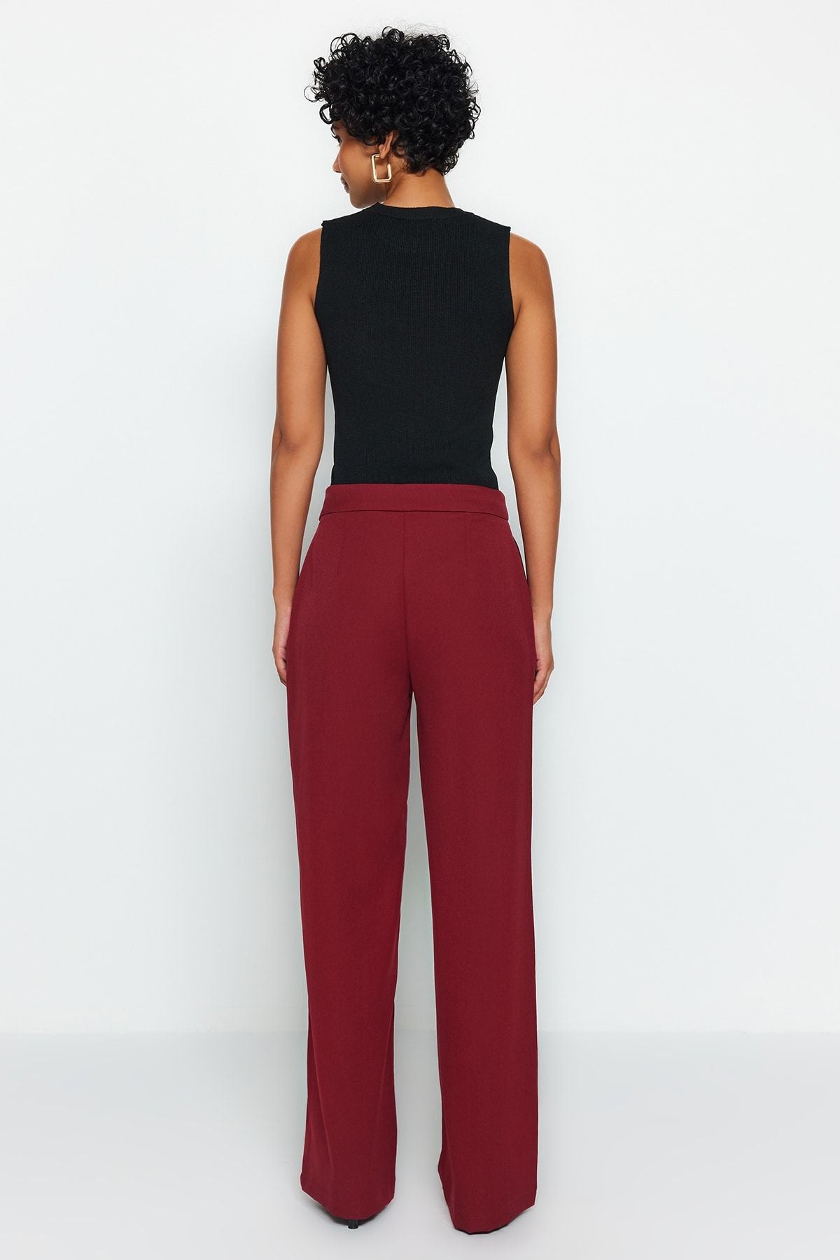 High-Waisted Wide Leg Trousers - Burgundy Tailored Pants